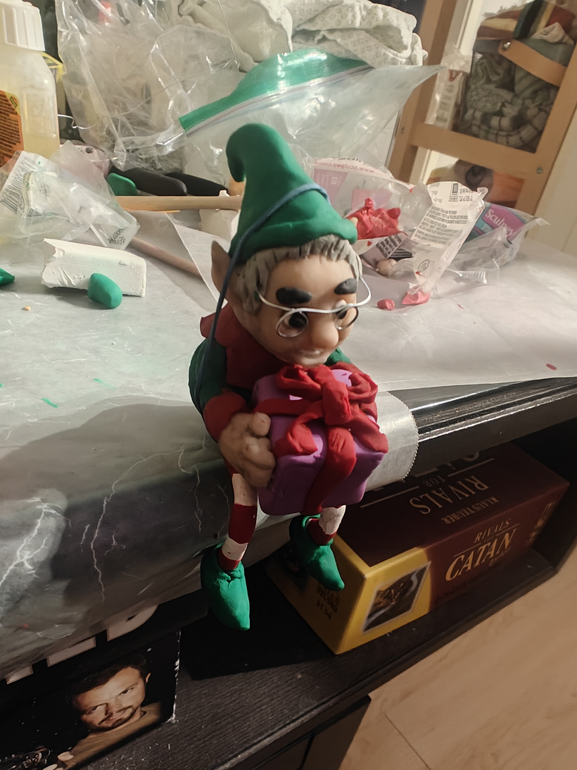 The elastic is due to a fractured leg joint. I think elf number two will be more solid.