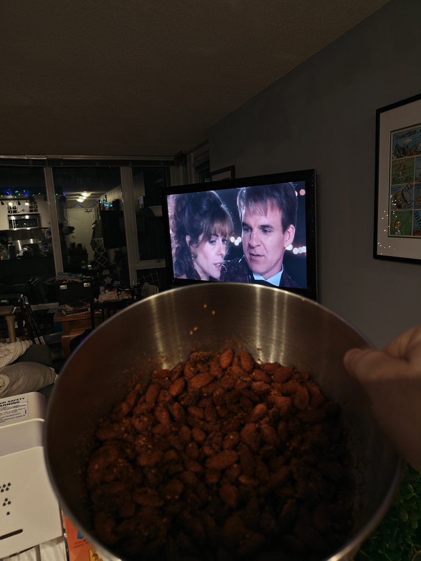 Today I also indulged my annual tradition of watching “Mixed Nuts” while making mixed nuts.